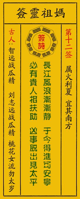 | 诗曰 | 长江风浪渐渐静、于今得进可安宁、必有贵人相扶助、凶事脱出见太平。 |