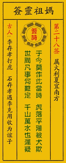 | 古人 | 【属火利夏宜南方】【李存孝打虎】【石存孝遇李克用收为谊子】 |